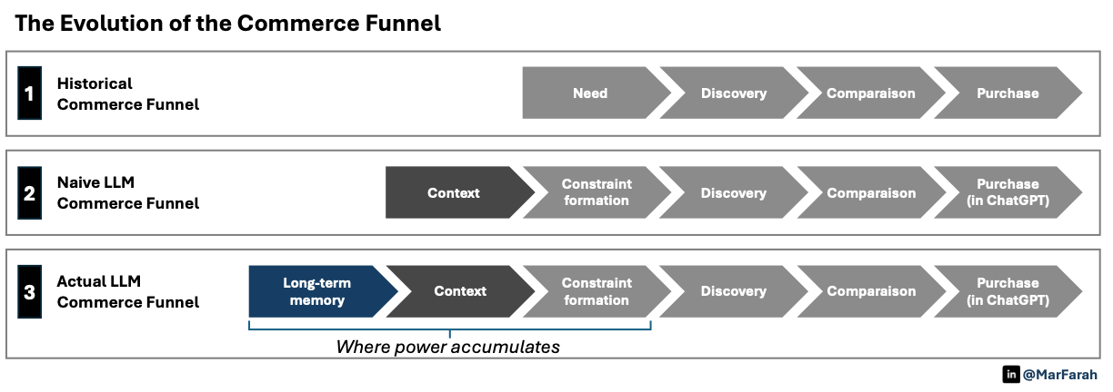 From a strategic perspective, that upstream layer, memory-driven constraint-setting and shortlist formation, is where leverage is likely to be most durable. Checkout matters. Ranking matters. But the actor that quietly shapes the shortlist, based on a deeper view of the user than anyone else has, will exert disproportionate influence on commerce.